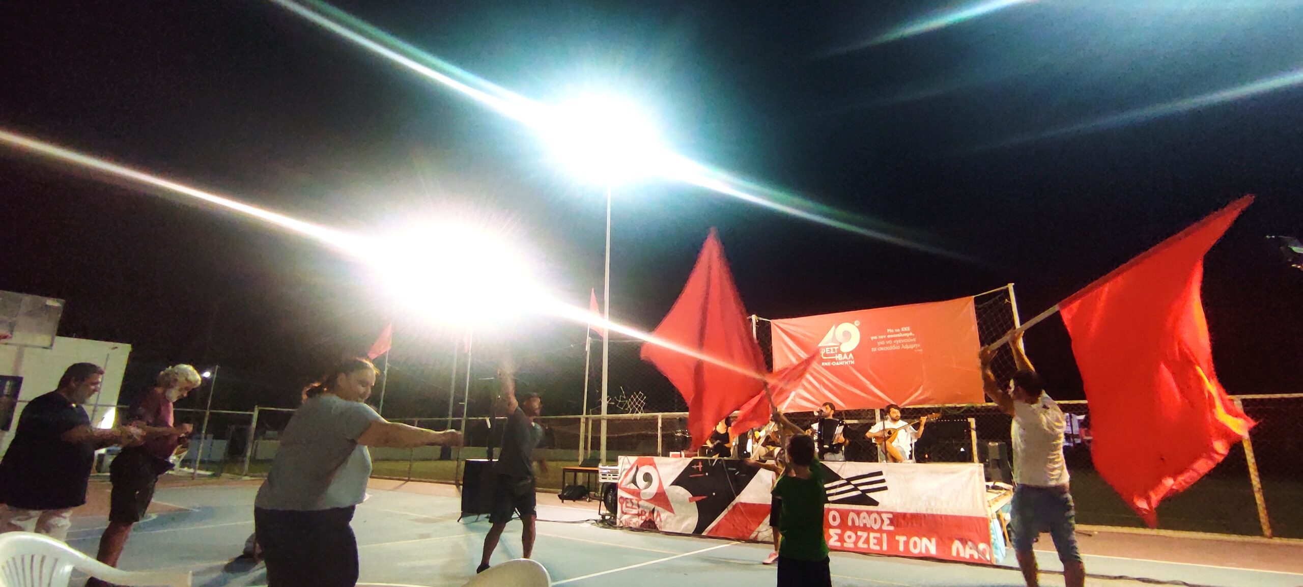 Ακολούθησε η κεντρική ομιλία από την Αιμιλία Λεκκού, μέλος του Κ.Σ της ΚΝΕ, που αναφέρθηκε μεταξύ άλλων στη μεγάλη αντίθεση της Ελλάδας του “τουριστικού θαύματος” και της εργασιακής ζούγκλας που επικρατεί στο νησί, καλώντας τον κόσμο να συμμετέχει μαζικά στην απεργία στις 21 Σεπτέμβρη, καθώς και στις εξελίξεις των τελευταίων ημερών.
