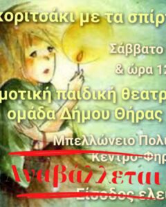 Αναβάλλονται οι χριστουγεννιάτικες παραστάσεις από την Παιδική Θεατρική Ομάδα του Δήμου Θήρας