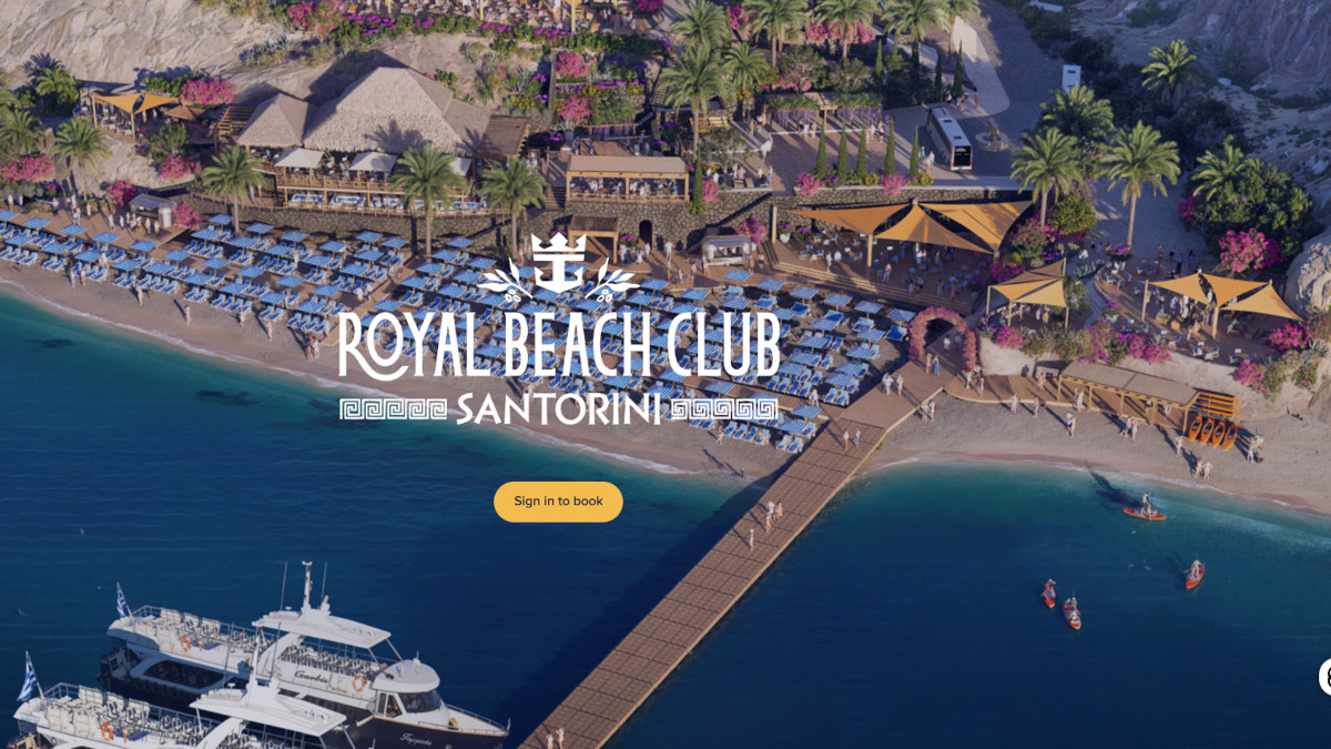 Τα παραπάνω αναφέρονται στην επίσημη ιστοσελίδα της Royal Caribbean στην οποία απεικονίζεται η μακέτα του Royal Beach Club Santorini που θα λειτουργεί το 2026 στην παραλία της Βλυχάδας.