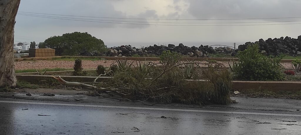 Τα περισσότερα προβλήματα που εντοπίστηκαν από το πέρασμα της κακοκαιρίας ήταν κυρίως σπασμένα κλαδιά δέντρων, μας ανέφερε ο Ιάκωβος Λιγνός αρμόδιος αντιδήμαρχος Πολιτικής Προστασίας του Δήμου Θήρας. Στο δημοτικό οδικό δίκτυο εκτός από τα γνωστά σημεία που πάντα παρουσιάζουν πρόβλημα δεν έχουν εντοπιστεί ιδιαίτερα προβλήματα. Ένα δέντρο ξεριζώθηκε στο Καμάρι στον πεζόδρομο από τους ισχυρούς ανέμους και η παρέμβαση των συνεργείων του Δήμου Θήρας ήταν άμεση.Έχουν ήδη κοπεί τα κλαδιά του και έχει μείνει μόνο ο κορμός ο οποίος είναι ακόμη στην άκρη του πεζόδρομου καθώς απαιτούσε άλλου είδους παρέμβαση που θα γίνει τις επόμενες ημέρες, μας ανέφερε ο Ι. Λιγνός.