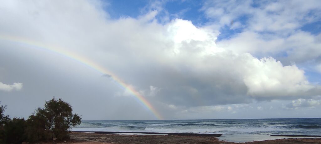Σας αφήνουμε με το ουράνιο τόξο που μας χάρισε η φύση κατά την διάρκεια του ρεπορτάζ και με την ευχή όλα να πάνε καλά και να μην σημειωθεί καμία άλλη ζημιά στο νησί.