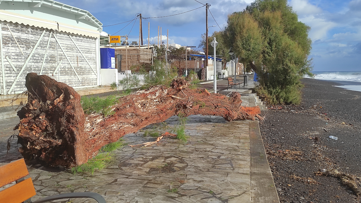 - Ξεριζώθηκε δέντρο από τους ισχυρούς ανέμους στο Καμάρι/@SantoriniMagazine-Χαρά Καπότου