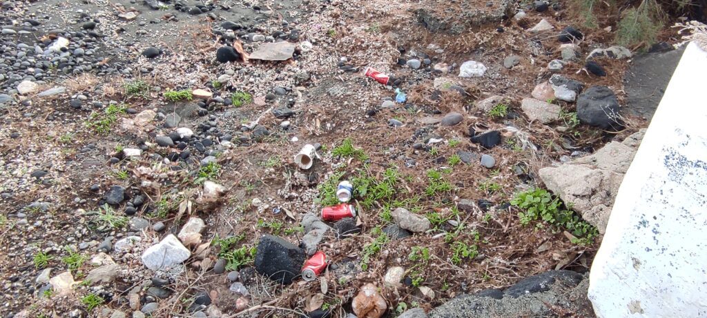 - Κουτάκια αλουμινίου που κατέληξαν στην παραλία/@SantoriniMagazine-Χαρά Καπότου