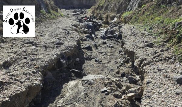Απαιτούνται πολυήμερες και εξειδικευμένες εργασίες για την αποκατάσταση της πρόσβασης για την προσέγγιση του καταφυγίου αδέσποτων ζώων Stray Paws Santorini μετά τις εκτεταμένες ζημιές που
