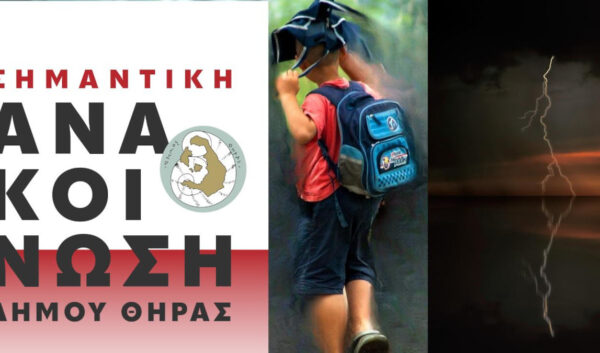 Την αναστολή λειτουργίας των Σχολικών Μονάδων του Δήμου Θήρας λόγω επικίνδυνων καιρικών φαινομένων που αναμένονται την Παρασκευή 5 Δεκεμβρίου αποφάσισε ο Δήμος Θήρας ως μέτρο