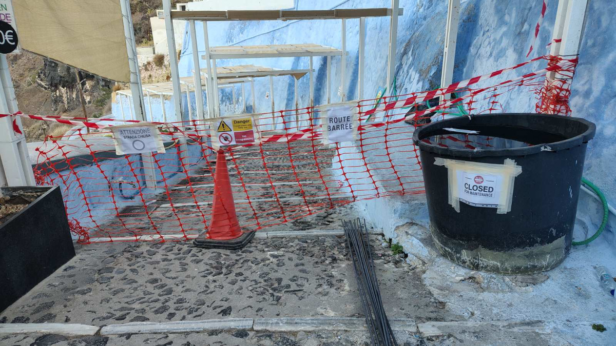 Kλειστή λόγω εργασιών συντήρησης είναι η κλιμακωτή οδός που συνδέει τα Φηρά με τον Όρμο Φηρών (Παλιό Λιμάνι).