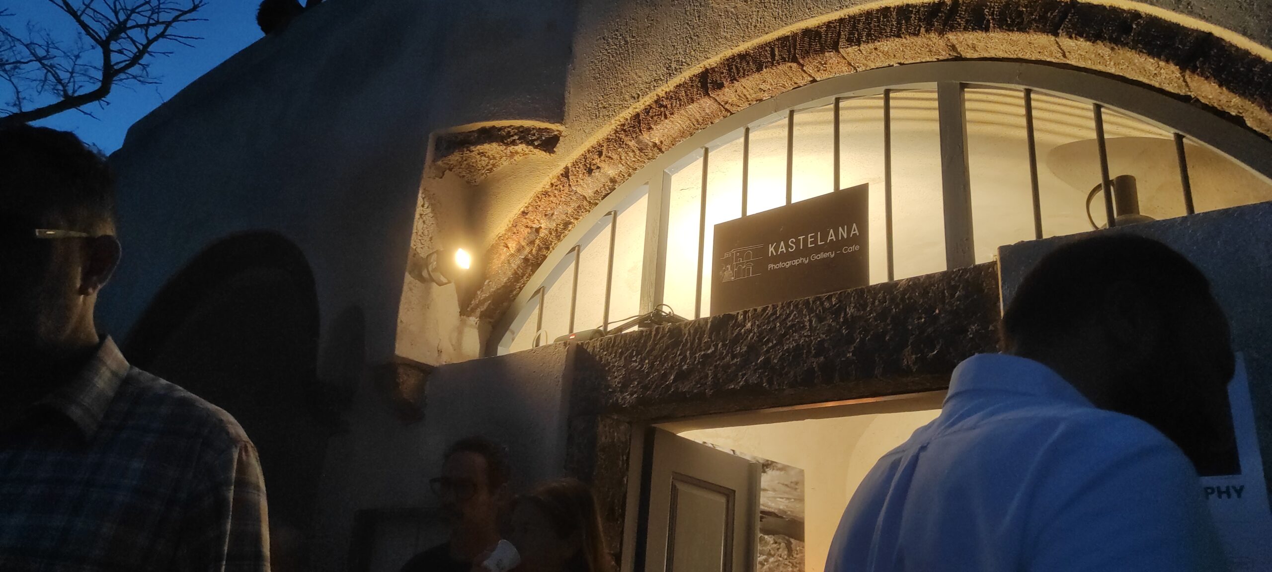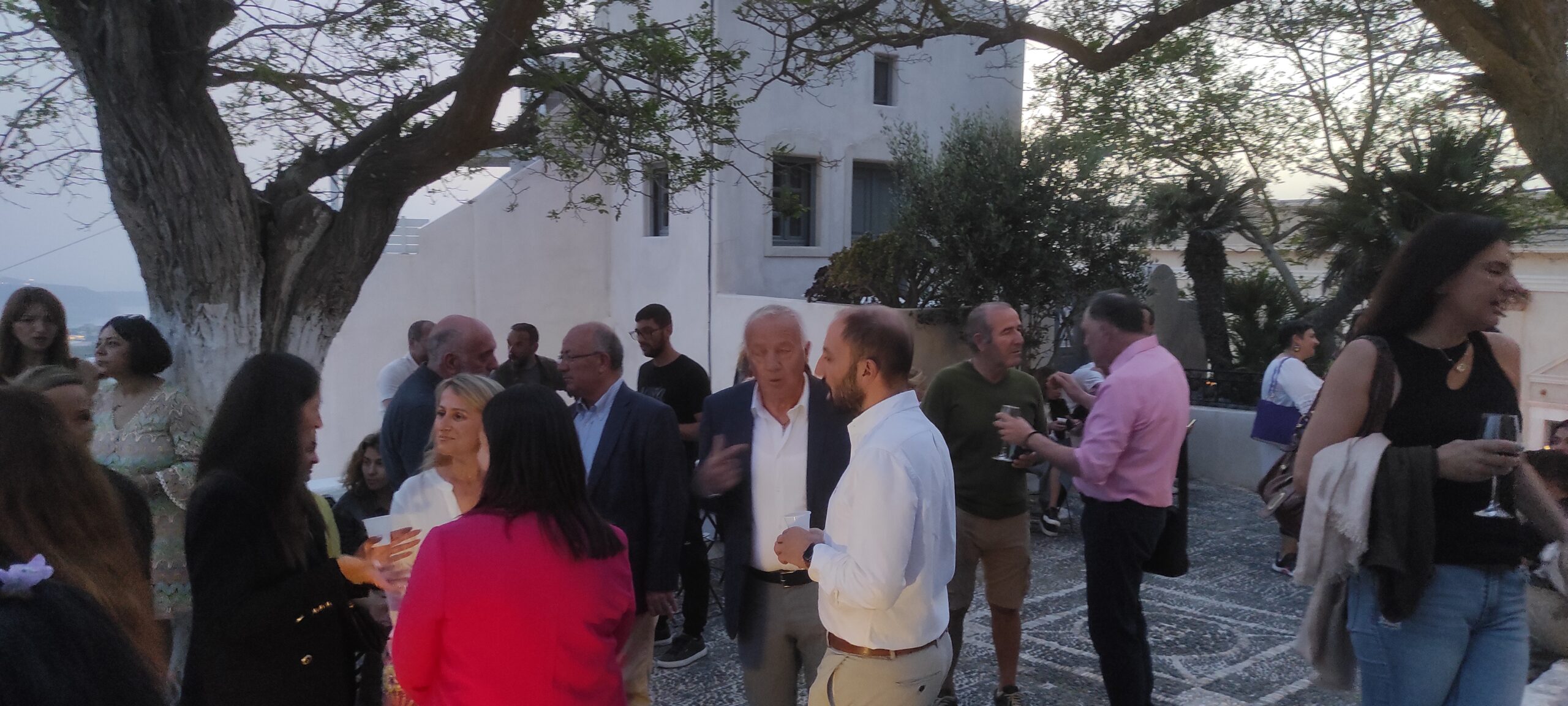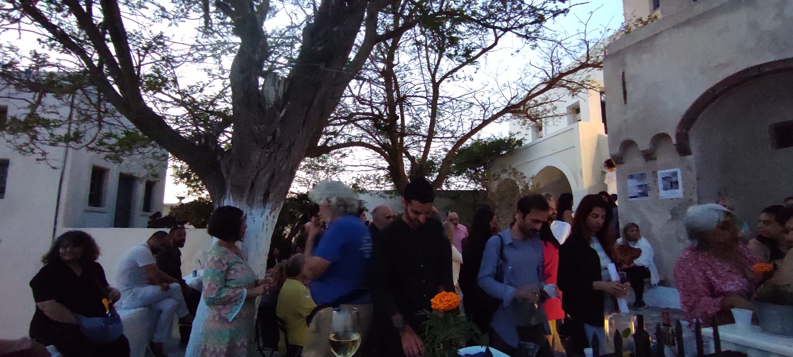 Οι χώροι της έκθεσης, η βεράντα και η βοτσαλωτή αυλή της Καστελάνα, με θέα τον κάμπο της Σαντορίνης, αποτέλεσε το απόλυτο σκηνικό για την έκθεση και την μικρή γιορτή των εγκαινίων της.