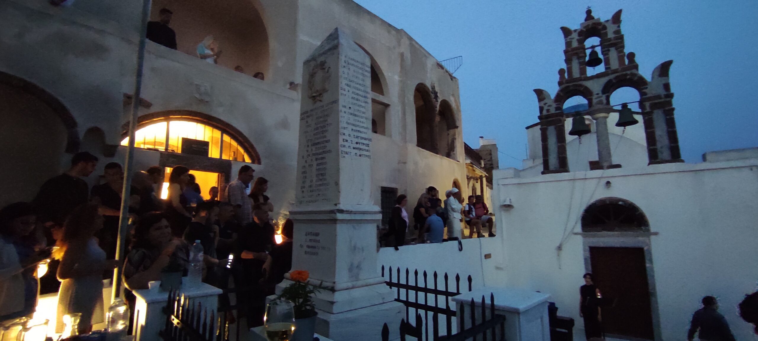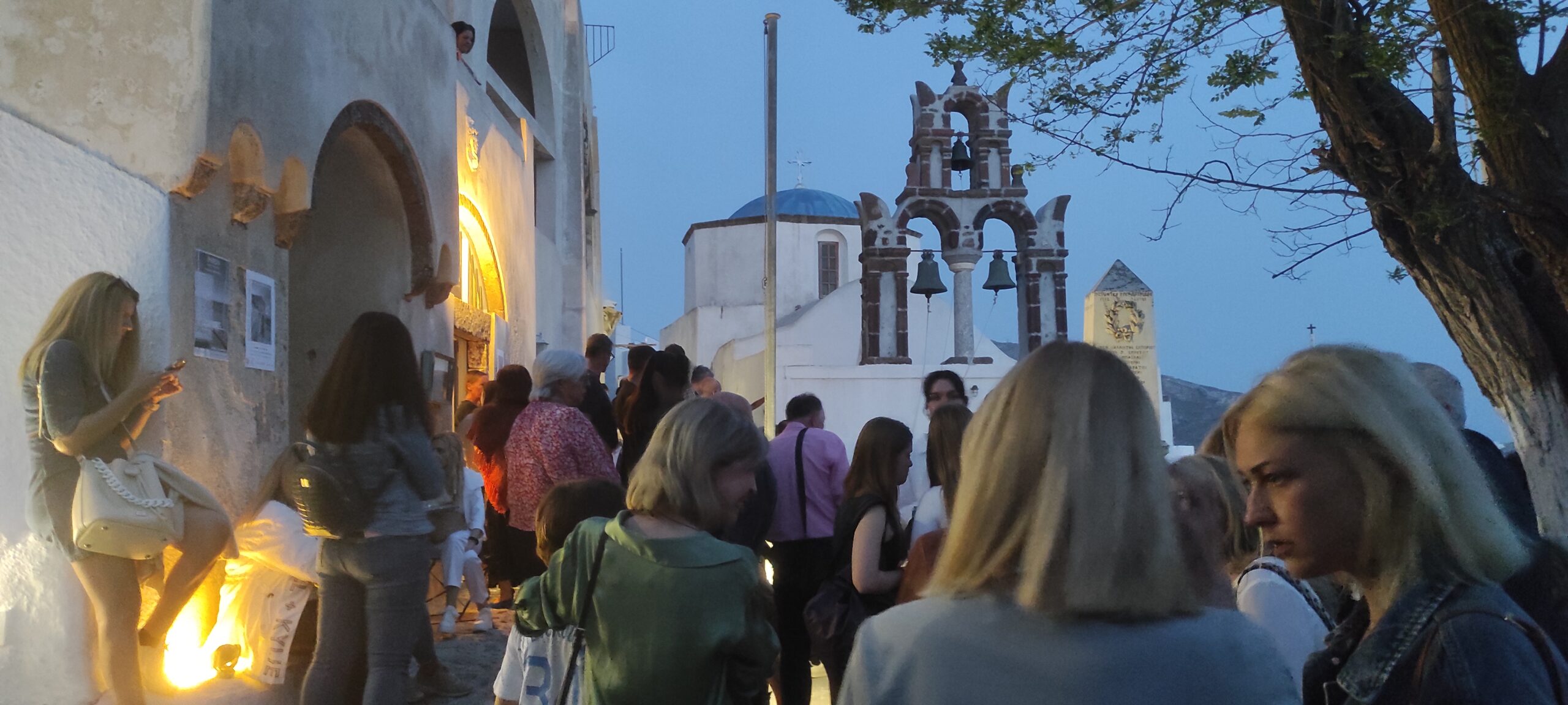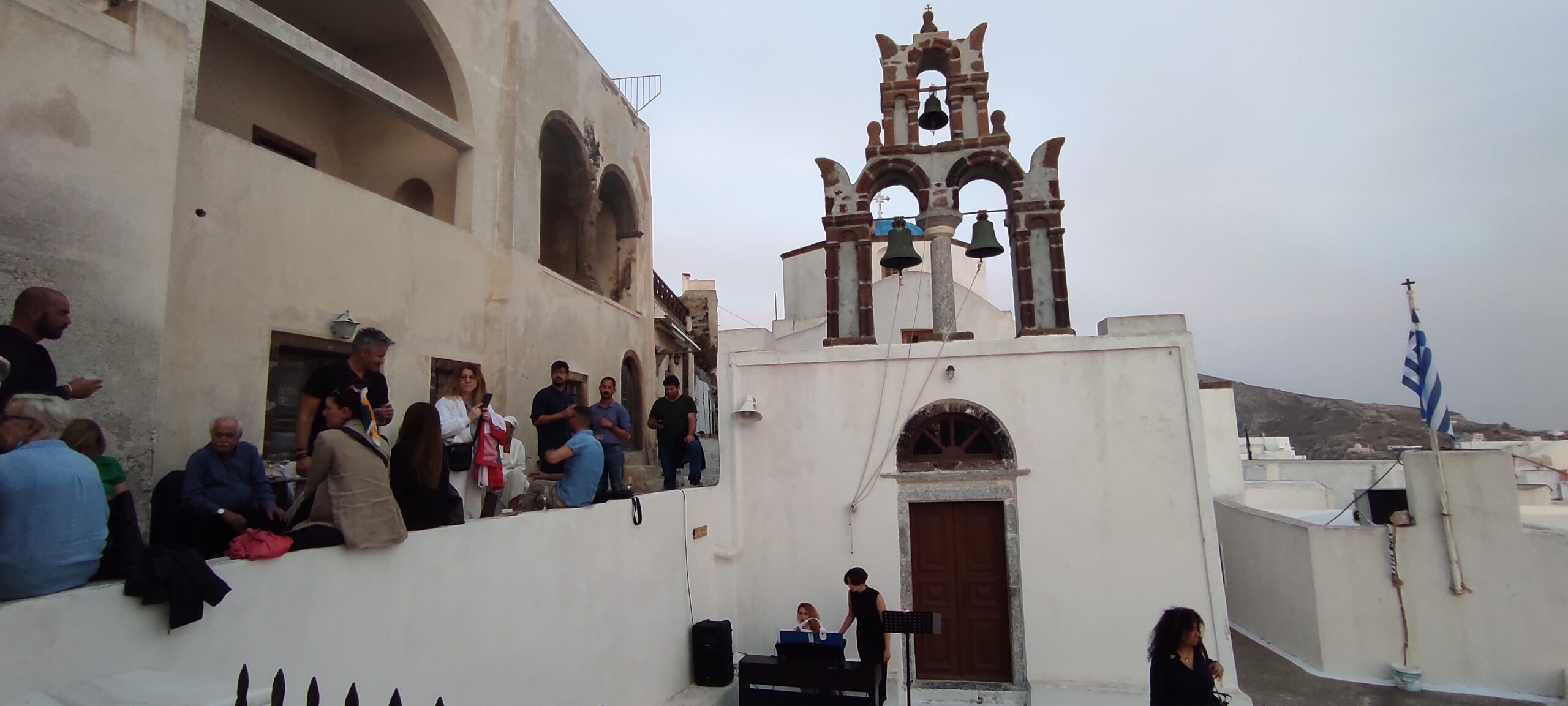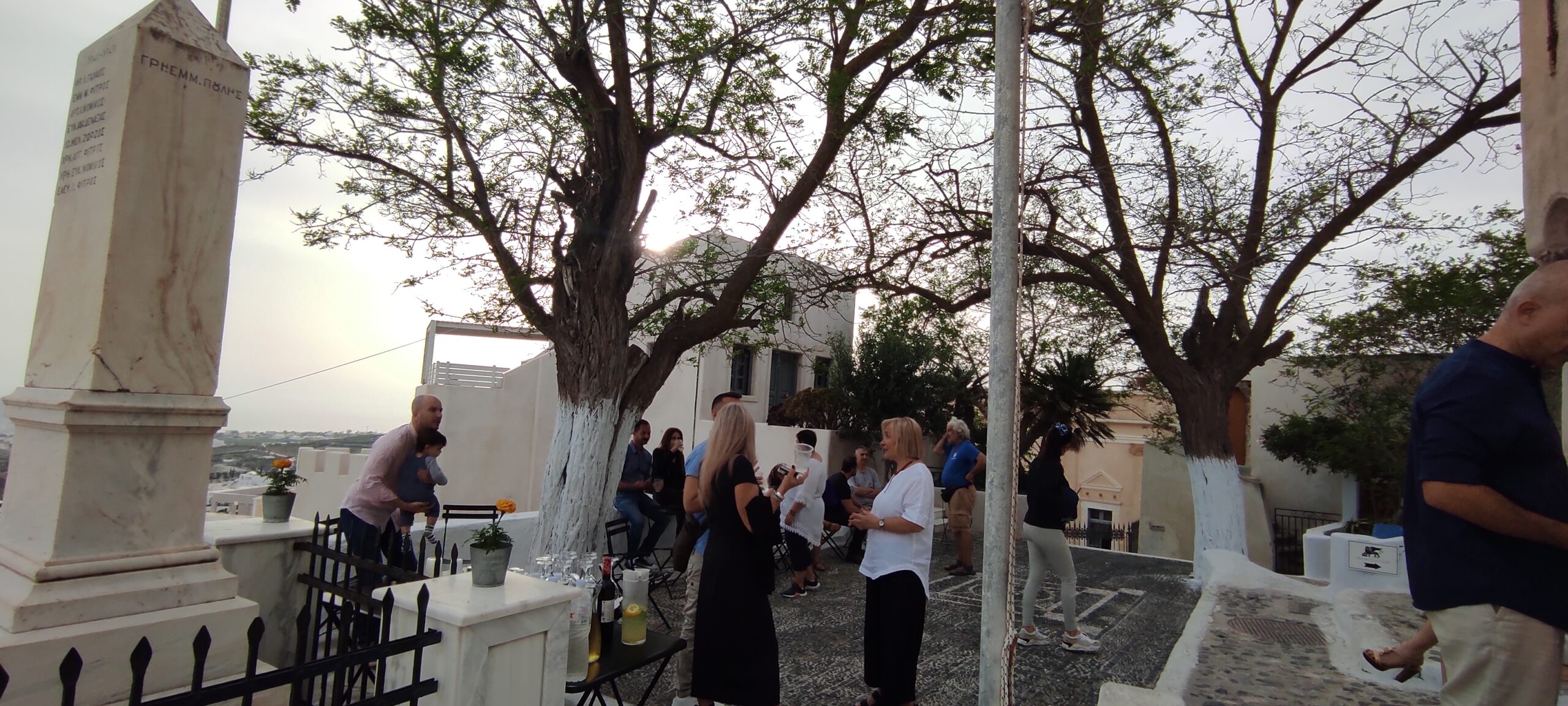Οι χώροι της έκθεσης, η βεράντα και η βοτσαλωτή αυλή της Καστελάνα, με θέα τον κάμπο της Σαντορίνης, αποτέλεσε το απόλυτο σκηνικό για την έκθεση και την μικρή γιορτή των εγκαινίων της.