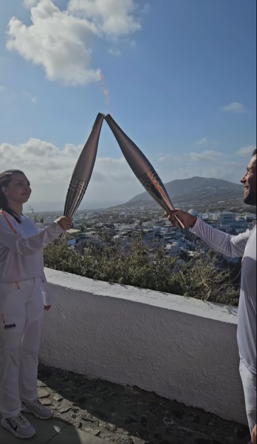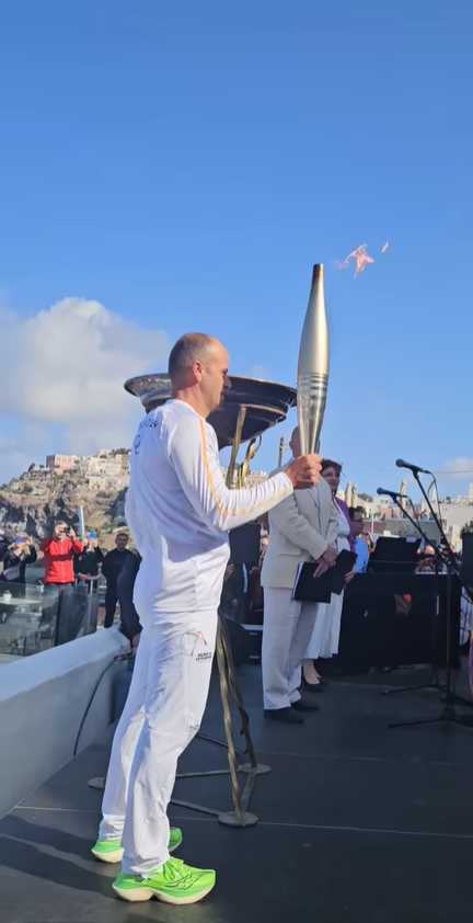 Την Ολυμπιακή Φλόγα υποδέχθηκε χθες η Σαντορίνη στο πλαίσιο της λαμπαδηδρομίας των 33ων Θερινών Ολυμπιακών Αγώνων που θα πραγματοποιηθούν στο Παρίσι .