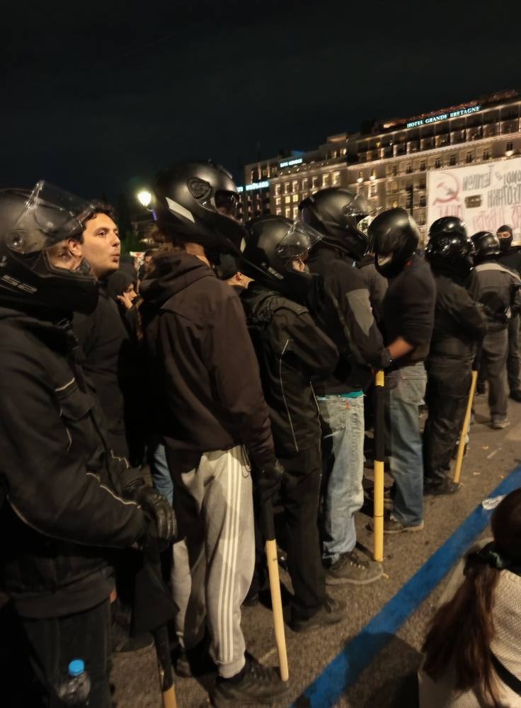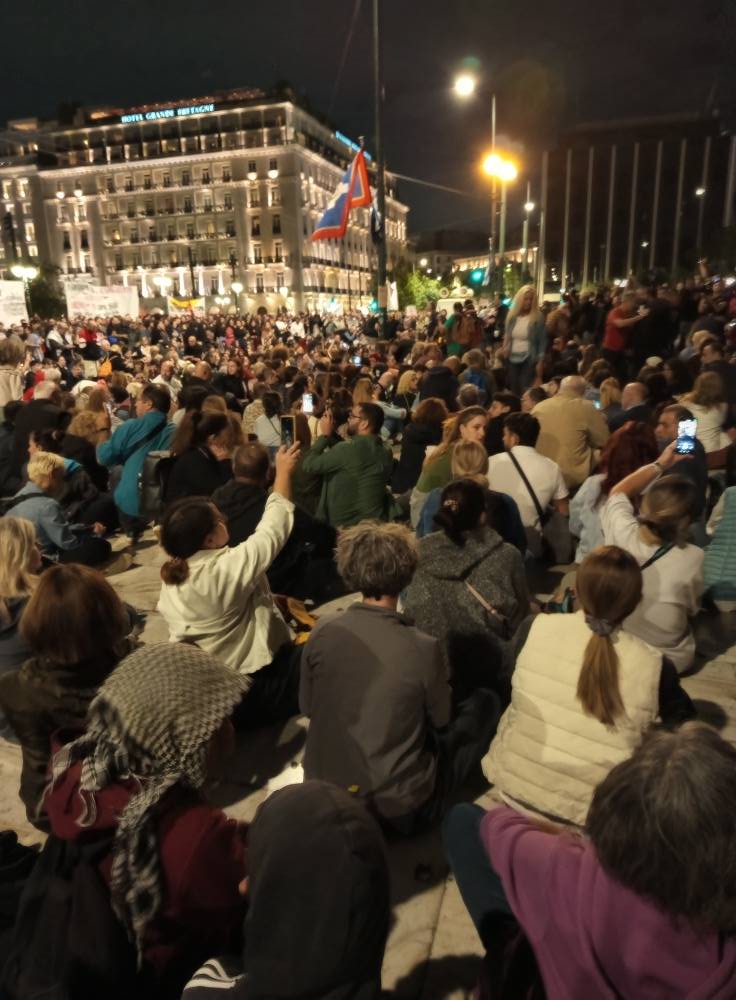 Στην Αθήνα για μια ακόμη φορά η συγκέντρωση ήταν μεγαλειώδης, στην οποία οι μάσκες έπεσαν, οι συγκεντρωμένοι αντέδρασαν αστραπιαία στην θέα ομάδων που είχαν ως στόχο να διαλύσουν την συγκέντρωση . Δόθηκε εντολή για καθιστική διαμαρτυρία αφήνοντας εκτεθειμένους όσους δεν είχαν πάει με σκοπό  να συμμετέχουν στην συγκέντρωση αλλά να την διαλύσουν.