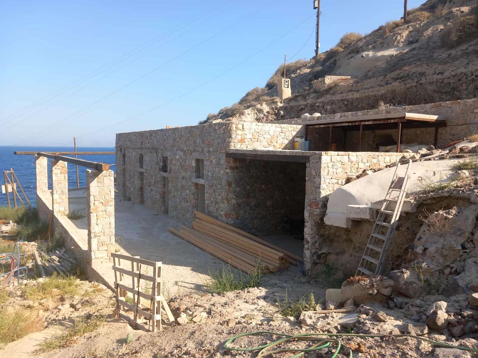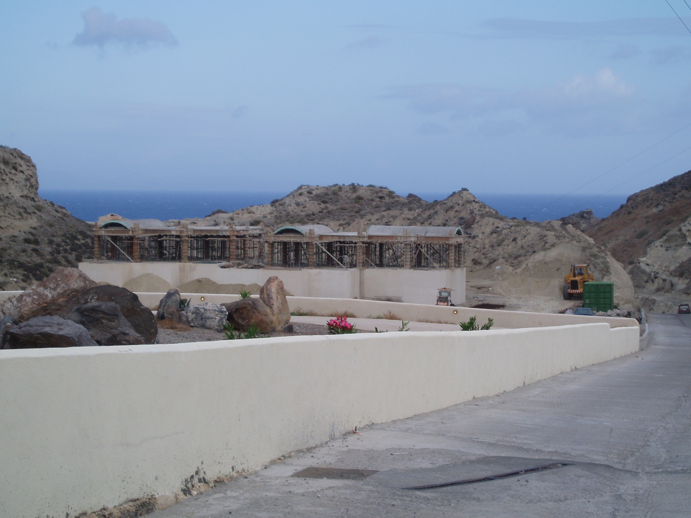Η οικοδομή που χτίζεται στην σκιά του Φάρου . Ο φάρος διακρίνεται πάνω στα πρανή -Κάθαρος 2008/ @αναγνώστης- SantoriniMagazine.gr