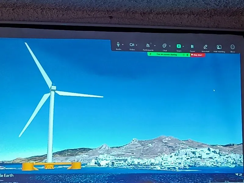 Φωτορεαλιστική απεικόνιση ανεμογεννητριών σε Νάξο και Δονούσα. Το μέγεθος των πλωτών ανεμογεννητριών πραγματικά κόβει την ανάσα τοποθετημένη δίπλα στην Πορτάρα προκειμένου να συλλάβουμε το γιγαντιαίο μέγεθος. 57 τέτοιες ανεμογεννήτριες θα τοποθετηθούν σε απόσταση από 1-6 ναυτ. μιλίων στη Δονούσα και η θέα τους από την ψηλότερη κορυφή των Κυκλάδων τον Ζα (1004 μ) είναι αυτό που θα απολαμβάνει ο περιπατητής κοιτάζοντας προς το απέραντο γαλάζιο του Αιγαίου