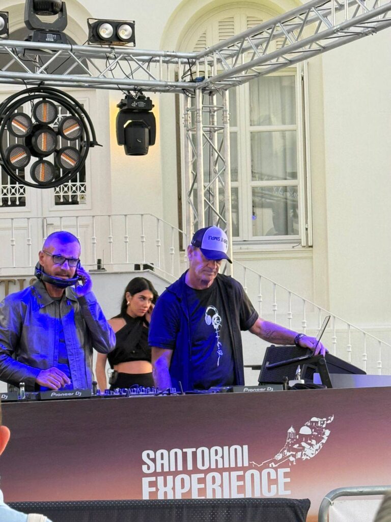 Για πρώτη φορά στην Καλντέρα του νησιού, ο διεθνώς καταξιωμένος dj Βασίλης Τσιλιχρήστος «μάγεψε» με την ενέργεια και τη μουσική του, συνοδευόμενος από το εντυπωσιακό live performance της Angela ‘S’. Το event πραγματοποιήθηκε έξω από τον Μητροπολιτικό Ναό στα Φηρά, την πιο μαγευτική ώρα του νησιού “The golden hour of Santorini’s sunset”. Η είσοδος ήταν ελεύθερη, προσφέροντας σε ντόπιους και επισκέπτες μια αξέχαστη εμπειρία.