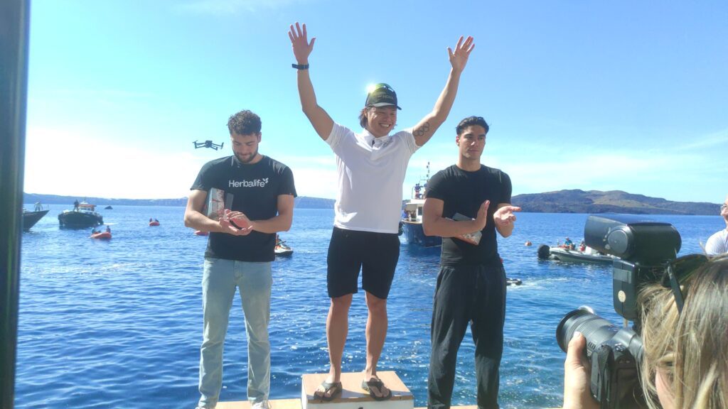Την Παρασκευή 10 Οκτωβρίου, οι συμμετέχοντες του Santorini Experience βούτηξαν στα βαθιά μαύρα νερά του Ηφαιστείου με κατεύθυνση το Παλιό λιμάνι των Φηρών, διασχίζοντας μια διαδρομή open water που σπάνια συναντάται αλλού στον κόσμο: πλάι στις δραματικές ηφαιστειακές πλαγιές και κάτω από το αξεπέραστο και επιβλητικό σκηνικό της Καλντέρας, διανύοντας μια απόσταση 1,5 μιλίου (2,4 χλμ.) μαγικής κολύμβησης. Παγκόσμια αστέρια της κολύμβησης βρέθηκαν στη Σαντορίνη, δοκιμάζοντας τις αντοχές και την τεχνική τους σε μια διαδρομή που συνδύασε ταχύτητα, στρατηγική και απαράμιλλη φυσική ομορφιά, προσφέροντας μια εμπειρία που μένει αξέχαστη σε κάθε συμμετέχοντα.