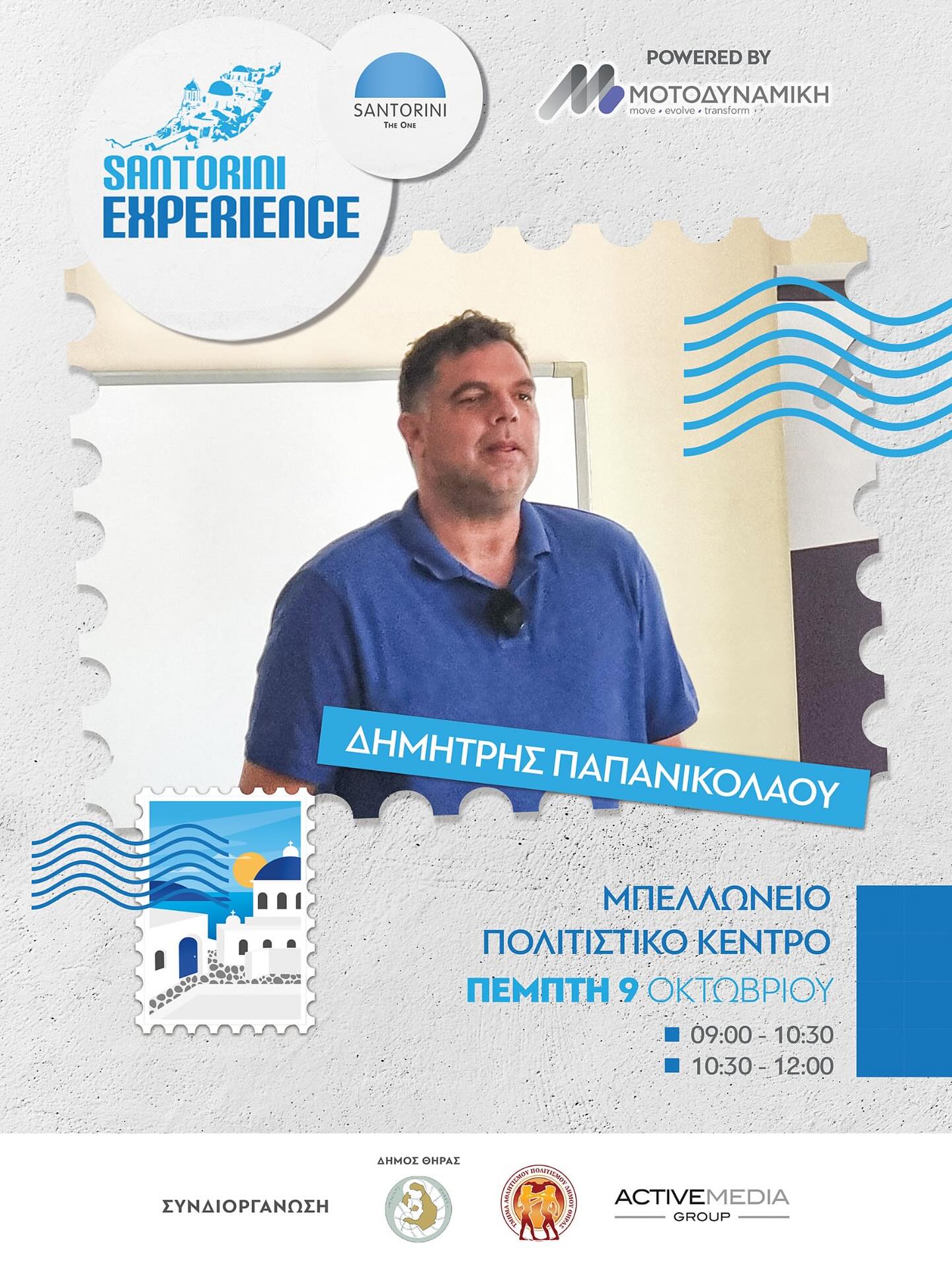 Το Santorini Experience αποτελεί συνδιοργάνωση του Δήμου Θήρας, του Τμήματος Αθλητισμού Πολιτισμού του Δήμου Θήρας και της ActiveMedia Group.