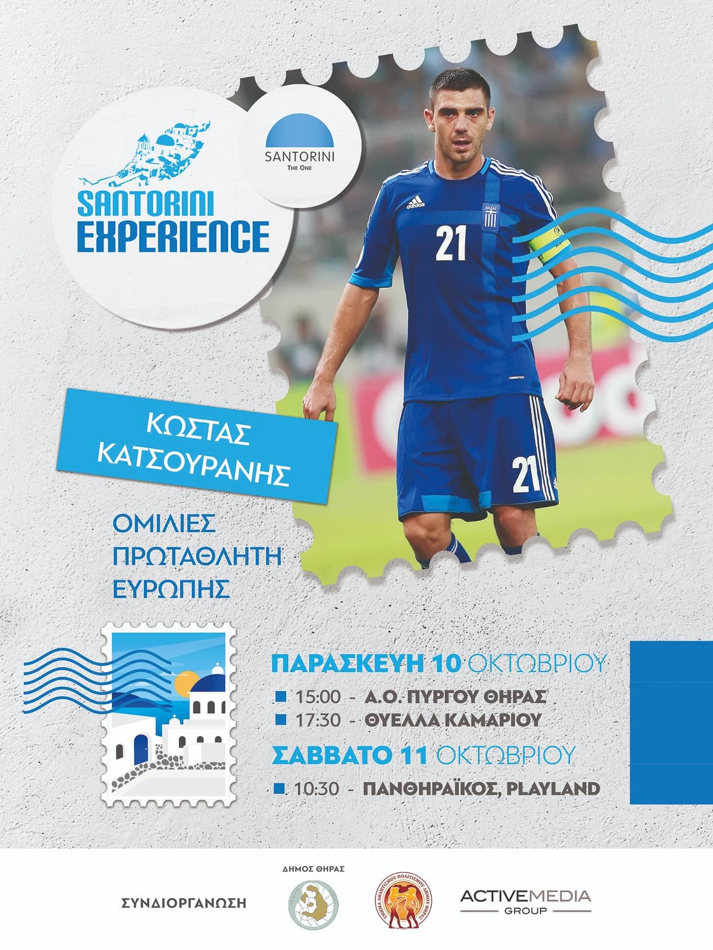 Ο πρωταθλητής Ευρώπης και European Legend 2004, Κώστας Κατσουράνης, θα επισκεφτεί τις ποδοσφαιρικές ομάδες της Σαντορίνης, τη Θύελλα Καμαρίου, τον Α.Ο. Πύργου και τον Πανθηραϊκό, εμπνέοντας τη νέα γενιά μέσα από τις ομιλίες του.