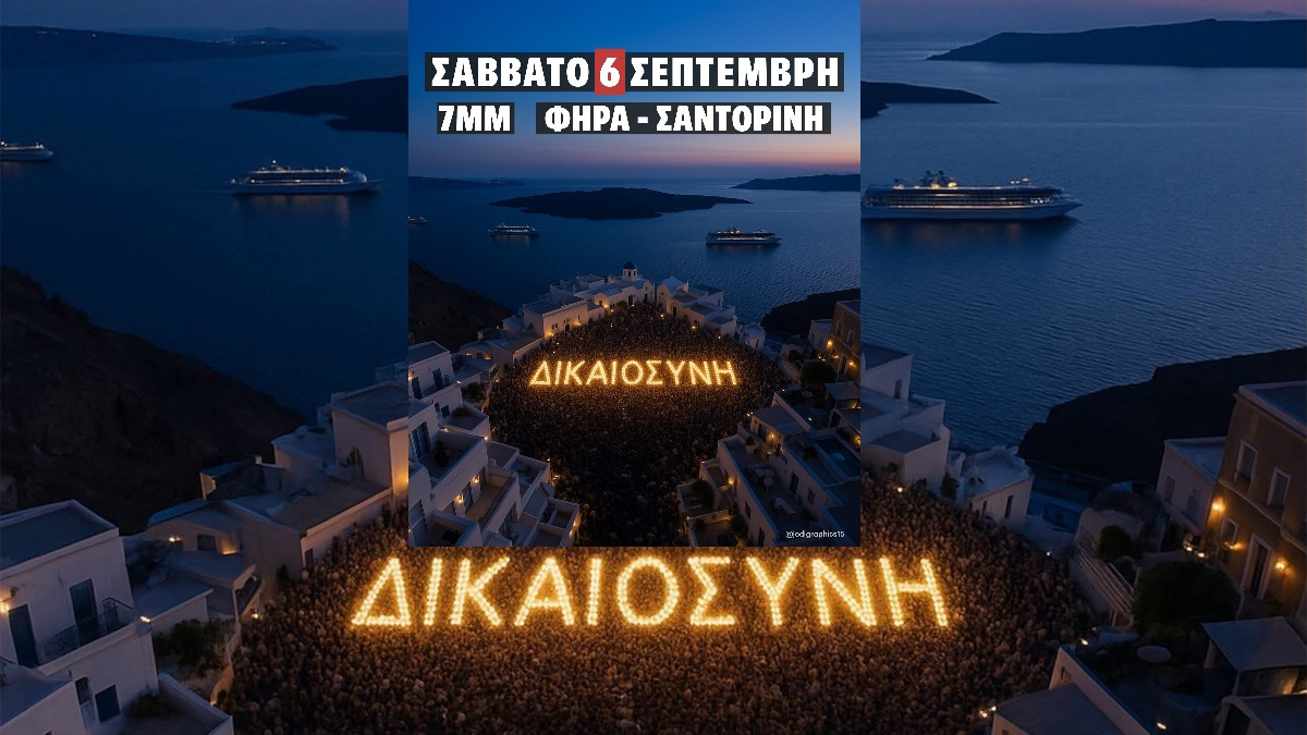 Στην Σαντορίνη η συγκέντρωση θα πραγματοποιηθεί στα Φηρά στην πλατεία Σαρπάκη στις 19:00 και το σύνθημα είναι ένα ΔΙΚΑΙΟΣΥΝΗ.