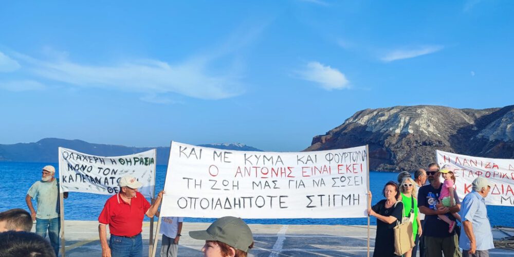 Θύματα παραπληροφόρησης οι κάτοικοι της Θηρασιάς δηλώνει στο Santorini Magazine ο Πρόεδρος της Κοινότητας Πέτρος Καραμολέγκος Με αφορμή την απουσία του στην χθεσινή συγκέντρωση των κατοίκων της Θηρασιάς οι οποίοι διαμαρτύρονται για την αλλαγή της λάντζας στο δρομολόγιο Θηρασιά – Αμμούδι – Θηρασιά το Santorini Magazine συνομίλησε … Continue reading “Παραπληροφορήθηκαν οι κάτοικοι”. Γιατί δεν παραβρέθηκε ο Πρόεδρος της Θηρασιάς στην συγκέντρωση των κατοίκων.