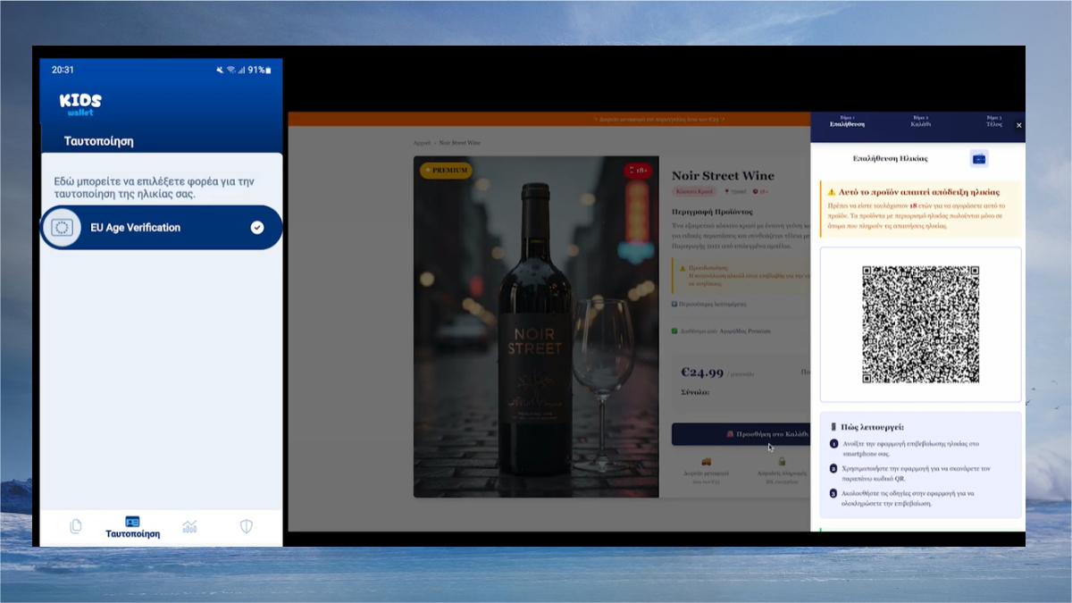 - Όσον αφορά στα διαδικτυακά καταστήματα, ο πολίτης σκανάρει από το Gov.gr Wallet και το Kids Wallet το QR code που εμφανίζεται στο περιβάλλον του διαδικτυακού καταστήματος. Με αυτόν τον τρόπο, τα διαδικτυακά καταστήματα λαμβάνουν μόνο την πληροφορία της ηλικίας (π.χ. πάνω από 18), ώστε να επιτρέψουν ή να αποτρέψουν την αγορά του προϊόντος (π.χ. προϊόν καπνού, αλκοόλ ή ταινία).