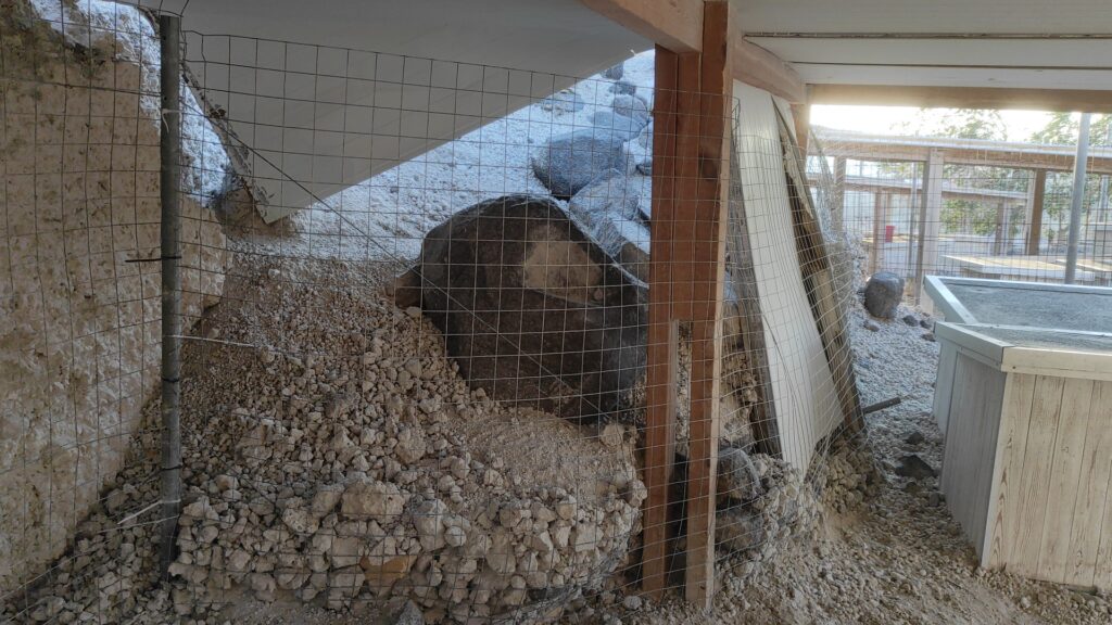 Το καταφύγιο εκτός από το ότι πωλείται από την ιδιοκτήτρια της έκτασης αυτοκαταστρέφεται, μας είπε η Μυρτώ Μπουγιούκα, από την ημέρα που μας ανακοίνωσαν ότι πρέπει να αποχωρήσουμε έως τον ερχόμενο Οκτώβριο που λήγει το συμβόλαιο μας, άρχισε να διαλύεται. Πέφτουν πέτρες, βράχια, χώματα και δεν μπορούμε να τα μαζέψουμε πια γιατί είναι πολλά και χρειάζονται πολλές χιλιάδες ευρώ για να κάνουμε αποκατάσταση. Δεν μπορούν να δώσουν τόσα χρήματα για ένα καταφύγιο το οποίο πρέπει να εγκαταλείψουν, καθώς πωλείται η έκταση που το φιλοξενεί.