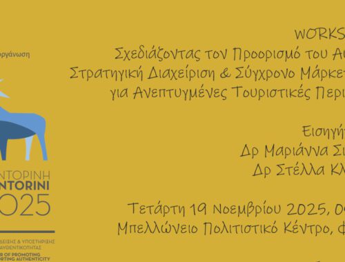 Workshop για τη Στρατηγική Διαχείριση και το Σύγχρονο Μάρκετινγκ Τουριστικών Προορισμών