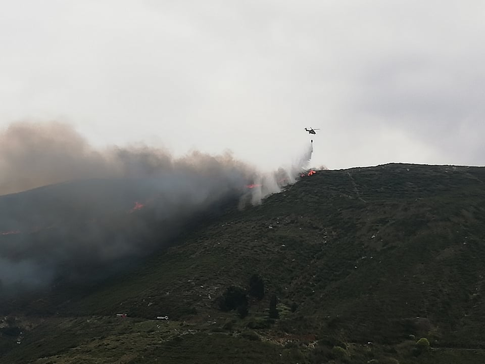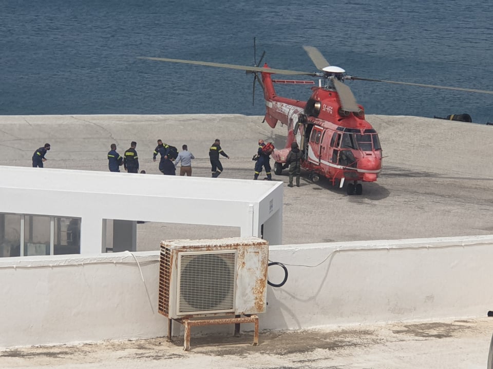 Στo νησί έφθασανπριν από λίγες ώρες άνδρες της ΕΜΑΚ με ελικόπτερο,προκειμένου να ενισχυθούν οι επίγειες δυνάμεις.
