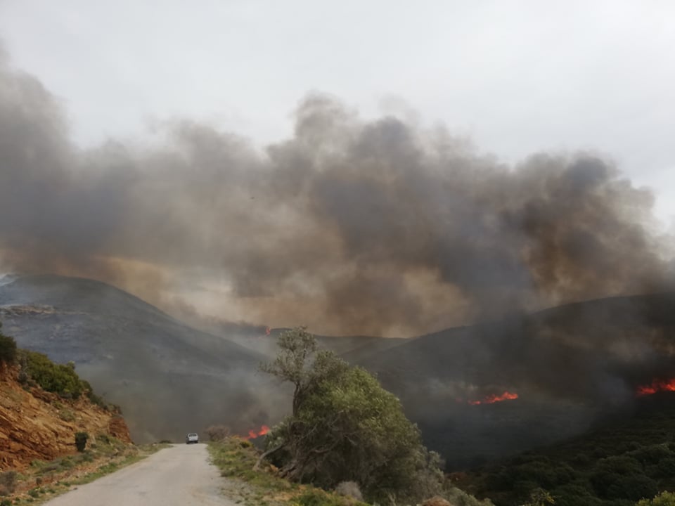 Σε εξέλιξη και εκτός ελέγχου μαίνεται η πυρκαγιά που ξεκίνησε τα ξημερώματα από την περιοχή Ρέματα στο νησί της Άνδρου.