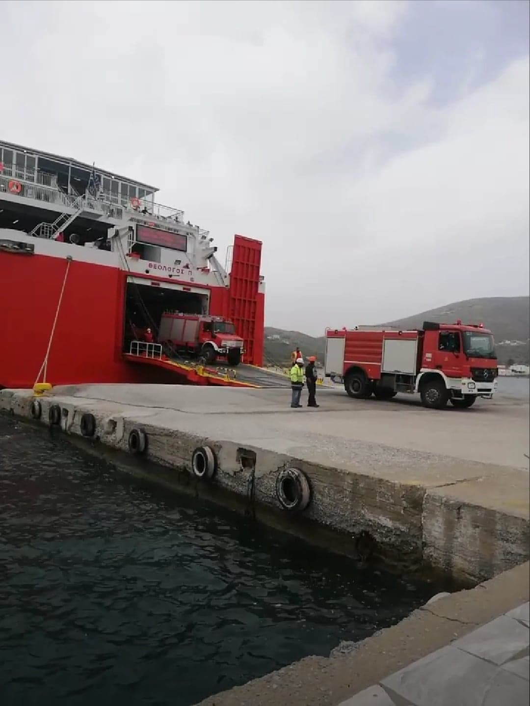 Το πλοίο Θεολόγος με έκτακτο δρομολόγιο μετέφερε στο λιμάνι της Άνδρου, πριν από λίγο 9 επανδρωμένα οχήματα της Πυροσβεστικής, προκειμένου να συνδράμουν στην κατάσβεση της πυργκαγιάς που ξέσπασε τα ξημερώματα στην περιοχή Ρέματα και εξαπλώθηκε στο Ατένι και Κατάκοιλο.