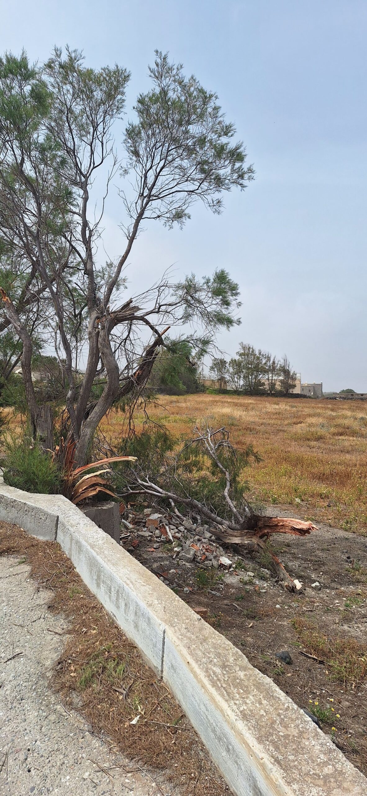 Μέσα σε μια καταχνιά λόγω της σκόνης που υπάρχει στην ατμόσφαιρα αποκαλύφθηκαν οι ζημιές που προκλήθηκαν εξαιτίας του δυνατού ανέμου που πνέει τις τελευταίες δύο ημέρες στο νησί.